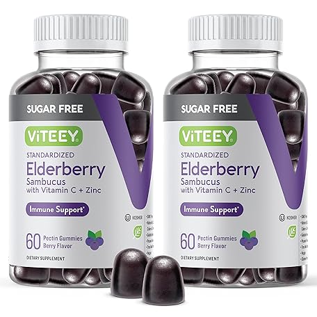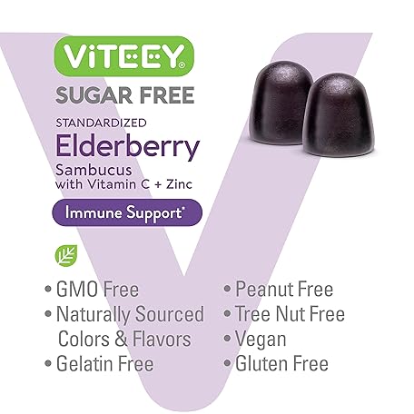 Thông tin sản phẩm VITEEY Sambucus Elderberry Gummies for Adults & Teens + Zinc & Vitamin C - Sugar Free - Immune Support & Booster Herbal Supplement - Vegan, Gluten Free, Gelatin Free, GMO Free, Chewable Berry Flavored