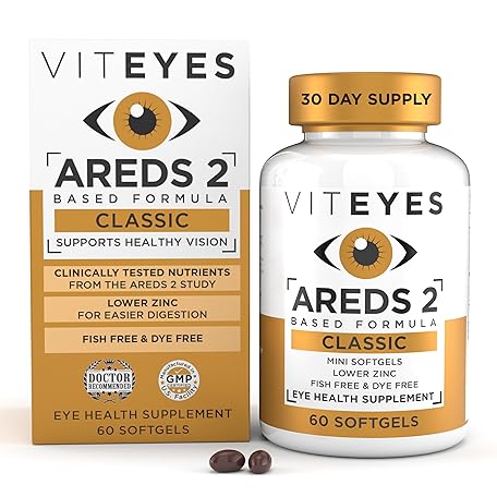 Thương hiệu Viteyes là cái tên nổi tiếng được rất nhiều khách hàng trên thế giới chọn lựa. Với kiểu dáng đẹp mắt, sang trọng, sản phẩm Viteyes AREDS 2 Classic Macular Health Formula Softgels, Eye Health Vitamin for Vision Protection, Lower Zinc, Eye Vitamins, Macular Vitamins, Beta-Carotene Free, 60 Softgels là sự lựa chọn hoàn hảo nếu bạn đang tìm mua một món cho riêng mình.