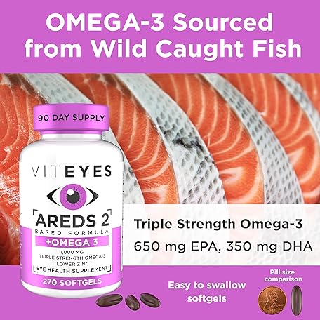 Thông tin sản phẩm Viteyes AREDS 2 + Omega-3 Macular Support Softgels, Plus Triple Strength Omega-3 (650 mg EPA, 350 mg DHA) for Heart Health & Eye Health, Eye Vitamins, Vision Supplement, 270 Softgels