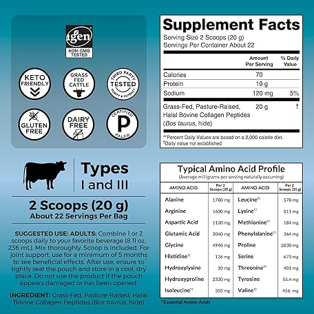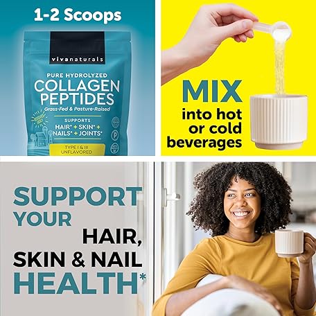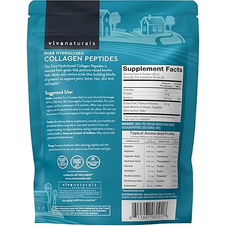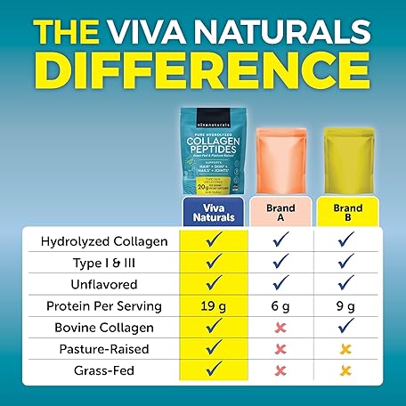 Thông tin sản phẩm Viva Naturals Hydrolyzed Collagen Peptides Powder, 1 lb – Grass-Fed & Pasture-Raised Bovine Collagen, Type I & III, Unflavored Powder for Hair, Skin & Nails