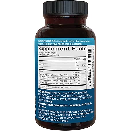 Thông tin sản phẩm Viva Naturals Triple Strength Omega 3 Fish Oil Pills – 2500 mg High-Potency Formula with 2250 mg Omega 3 Fatty Acids (Including EPA, DHA, DPA) in rTG Form for Absorption – IFOS Certified, 90 Softgels