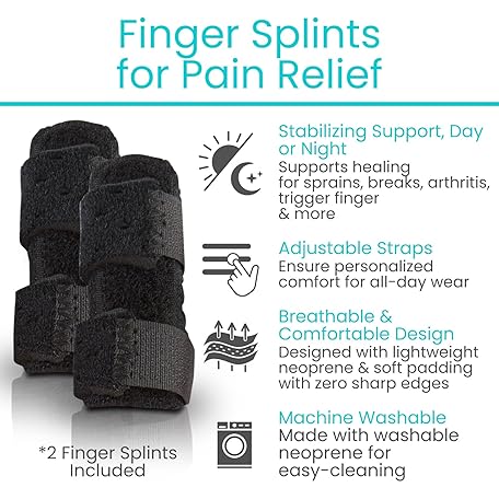 Sản phẩm Vive Finger Splint (2 Pack) - Universal Finger Straightener - Broken and Trigger Finger Splints - Finger Brace for Arthritis pain and Support - Sprain Relief for Middle, Index, Ring, Pinky Fingers (Black) đang được bán với giá ưu đãi là $8.7091 tại nước Mỹ.
