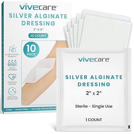 Sản phẩm ViveCare Silver Calcium Alginate Wound Dressing (10 Pack)- Sterile 2x2 Medical Gauze Pad - Wound Care for Burns, Cysts and Ulcer Treatment - Highly Absorbent Individual Patch - Non-Stick Padding đang được bán với giá ưu đãi là $16.3391 tại nước Mỹ.