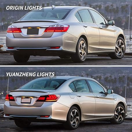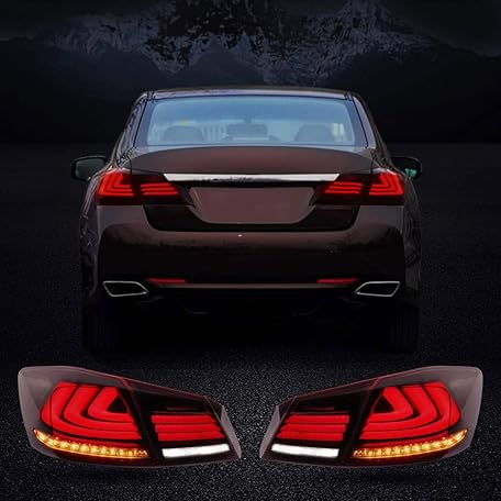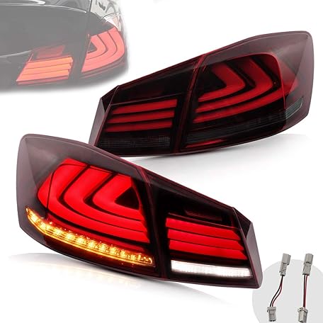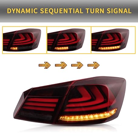 VLAND Full LED Tail Lights for [Honda Accord 9th Gen Sedan 2013 2014 2015] with Amber Sequential Turn Signal, YAB-YG-0250-H, Red & Smoked [Don't fit a Honda accord lx/Sport/Touring/EX-L]