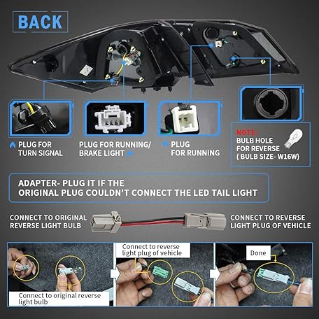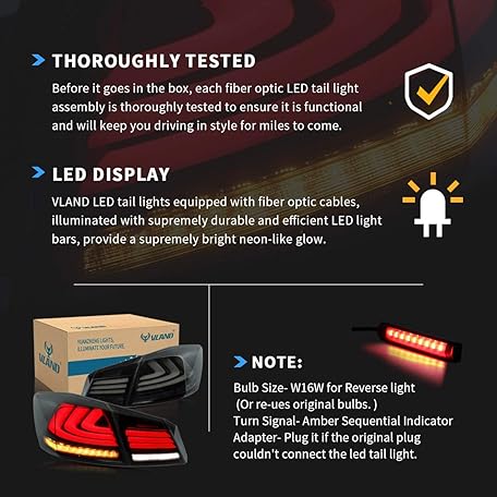 • VLAND LED Tail lights Compatible with Honda accord 4-Door Sedan 2013 2014 2015 with Amber Sequential Turn Signal Passenger+Driver Sides, Smoke