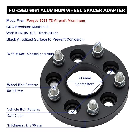 Sản phẩm VLAOSCHI Black Forged 5x115 Hubcentric Wheel Spacers 2 Inch with 14x1.5 Studs 71.5mm Hub Bore Compatible with Dodge 5 Lug for 2009-2022 Challenger | 2006-2022 Charger | 2005-2008 Magnum - Pack of 4 đang được bán với giá ưu đãi là $140.5991 tại nước Mỹ.