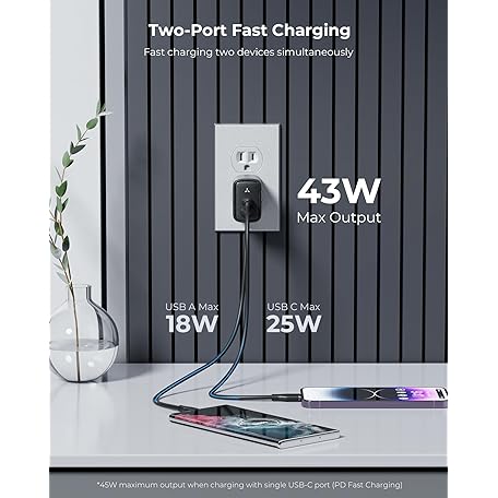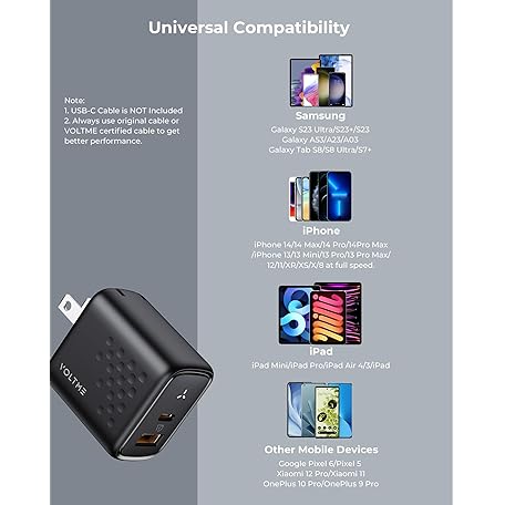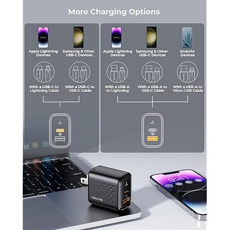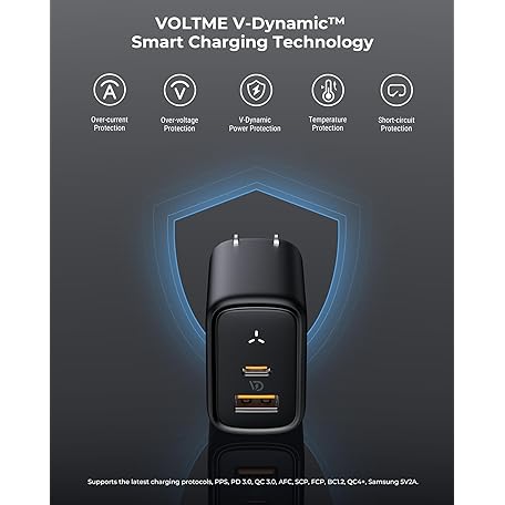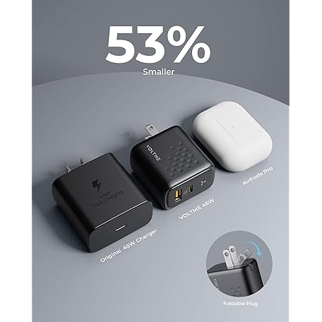 VOLTME 45W USB C Charger Block, Foldable GaN PPS USB C+USB A FastCharger,Super Fast Charging 2.0 Compatible with iPhone 17/16/15/14Series, Galaxy S25/S24/S23/S22 Series, MacBook Air,iPad and More