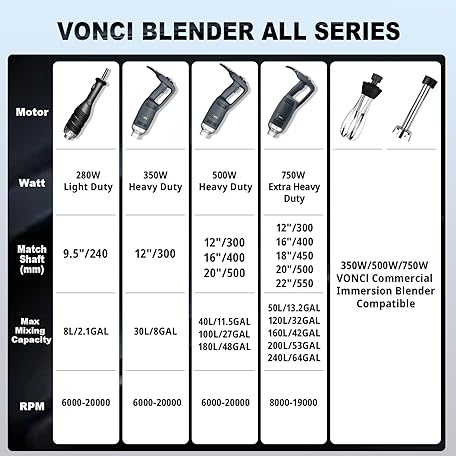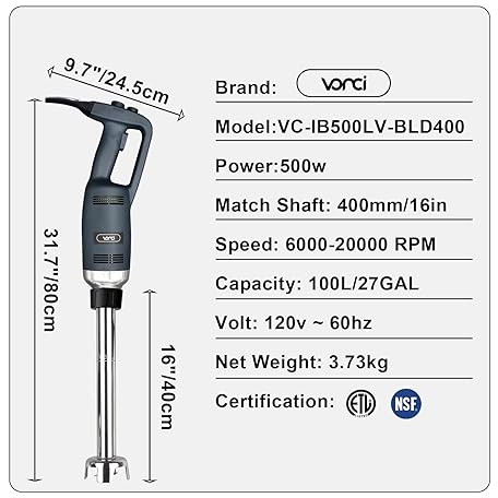 Thông tin sản phẩm VONCI 500W Commercial Immersion Blender, 16" SUS 304 Removable Shaft, Heavy Duty Power Hand Mixer with Variable Speed 6000-20000RPM, Professional Electric Stick Blender for Restaurant Kitchen Use.