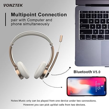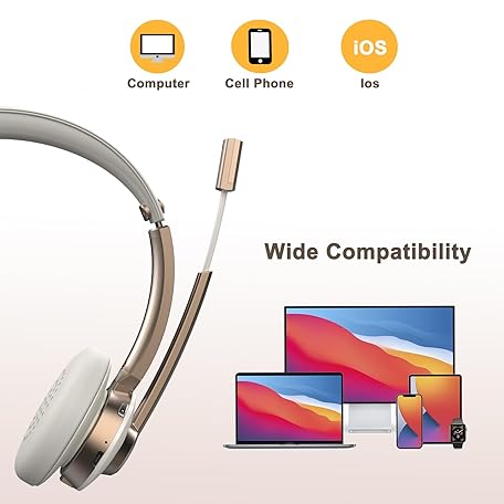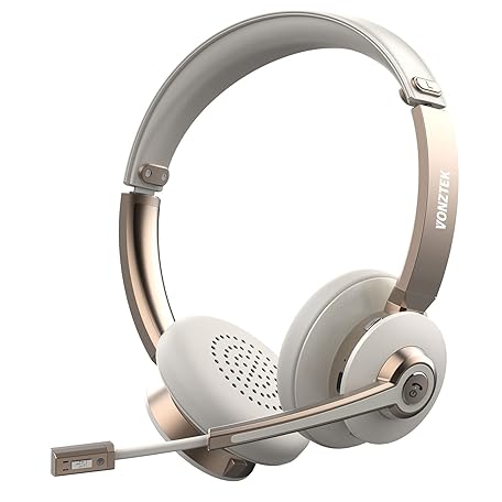Thông tin sản phẩm Vonztek Bluetooth Headset with Microphone, Wireless Headphones with Noise Cancelling Mic, 26hrs talktime, On Ear Headphones with Mic Mute for Mac/Laptop/Zoom/Teams/Call Center/Office/Home Gold