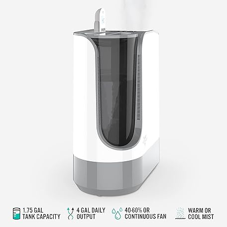 Thông tin sản phẩm Vornado UH200 Ultrasonic Humidifier with Fan-Assisted Whole Room Humidification, Auto Humidity Control, Remote, and Electronic Humidistat, UH200 — 1.75 gal tank, White