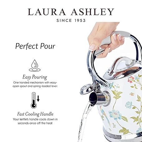 Thương hiệu Laura Ashley là cái tên nổi tiếng được rất nhiều khách hàng trên thế giới chọn lựa. Với kiểu dáng đẹp mắt, sang trọng, sản phẩm VQ Laura Ashley Elveden White 3L Stainless Steel Tea Kettle Stovetop Whistling Teapot for Induction, Gas Hob or others. Silicon Coated Cool Handle & Push Button Mechanism Vintage Stove Top Kettle là sự lựa chọn hoàn hảo nếu bạn đang tìm mua một món cho riêng mình.