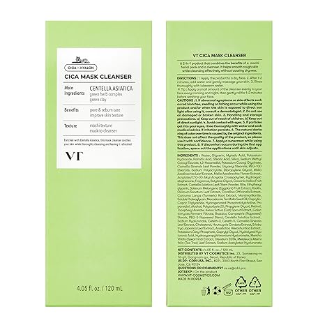Thông tin sản phẩm VT COSMETICS CICA Mask Cleanser, 2-in-1 Facial Wash, Non-Drying Clay Mask, Gentle Pore Care, Exfoliating, Hydrating, Centella Asiatica for Acne-Prone & Sensitive Skin, Korean Skincare (4.05 fl. oz)