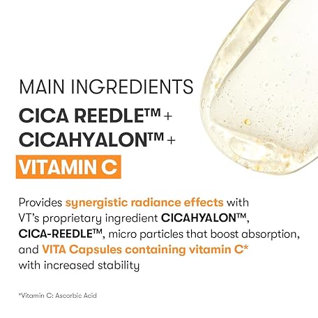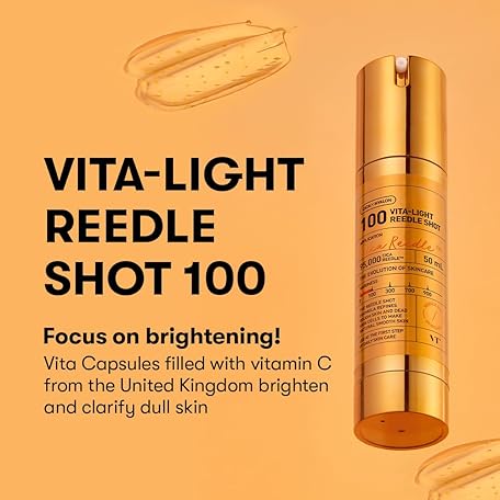 VT Cosmetics Vita-Light Reedle Shot 100, Serum with Vitamin C Capsules, Vitamin E, Hydrating Care, Korean Skincare for Sensitive Skin 1.69Fl Oz(50ml)