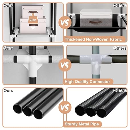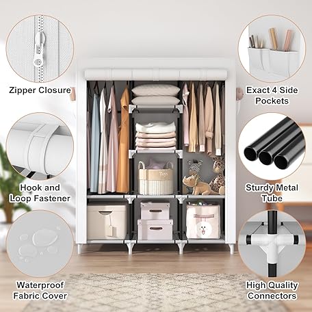 VTRIN Portable Closet Wardrobe for Hanging Clothes with 2 Hanging Rods and 8 Storage Organizer Shelves,Sturdy Large Wardrobe Closet for Bedroom Free Standing Clothes Rack with Cover,White