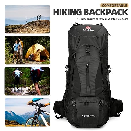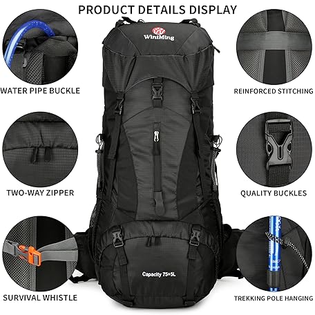 Sản phẩm W WINTMING 75L Hiking Backpack with Rain Cover Waterproof Camping Backpack Shoes Warehouse for Men Women, Frameless đang được bán với giá ưu đãi là $38.3571 tại nước Mỹ.