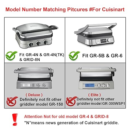 Thông tin sản phẩm Waffle Plates for Cuisinart Griddler GR-4N, GR-5B, GR-6 and GRID-8N Series - 4 Slicer Nonstick Coating Baking Plates