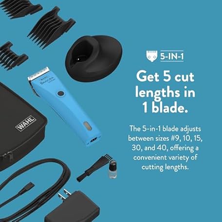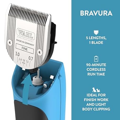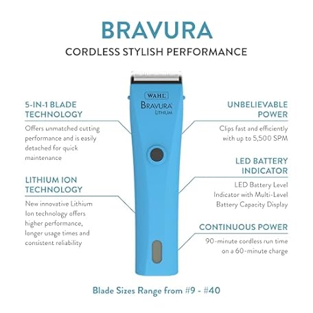 Thông tin sản phẩm WAHL Professional Animal Bravura Lithium Ion Clipper - Pet, Dog, Cat, and Horse Corded / Cordless Clipper Kit, Turquoise (41870-0438)