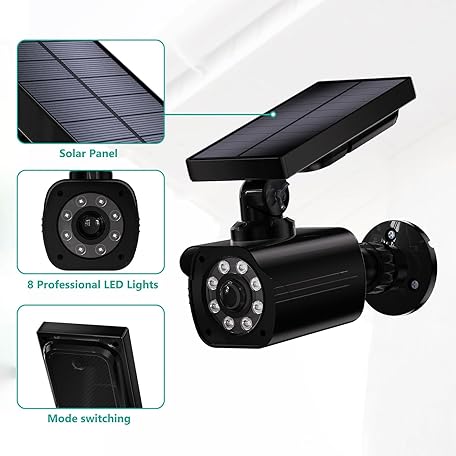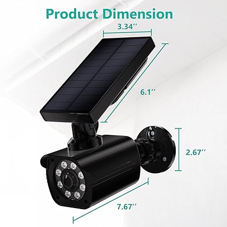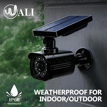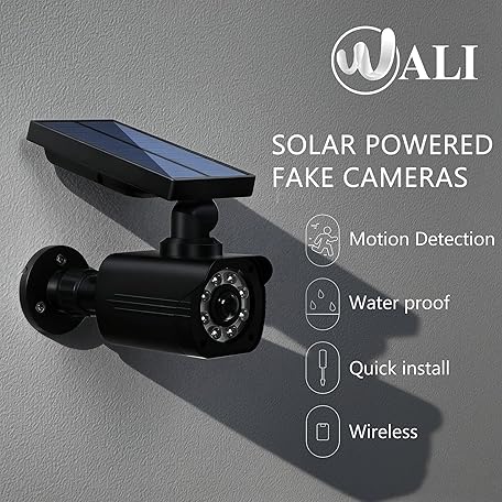 • WALI Dummy Fake Camera, Security Camera with Motion Sensor Flood Light, Simulated Surveillance Security CCTV Dome Camera Indoor Outdoor (TCB2-SOL), 2 Packs, Black-Solar