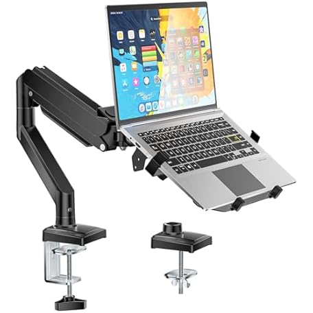 WALI Laptop Desk Mount, 2-in-1 Monitor Mount with Adjustable Laptop Tray, Fits Max 17" Notebook and 34" Computer Screen, Max Holds 22-26.4 lbs, Single Monitor Laptop Stand for Desk (GSMP001NLP), Black