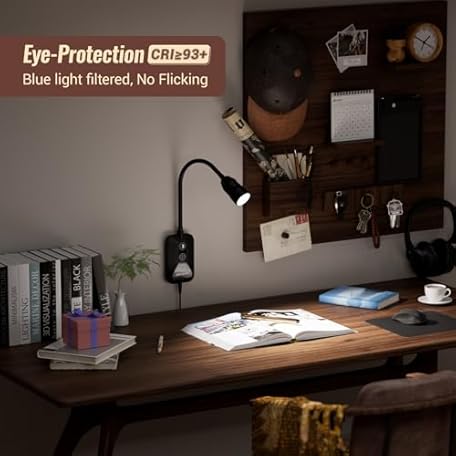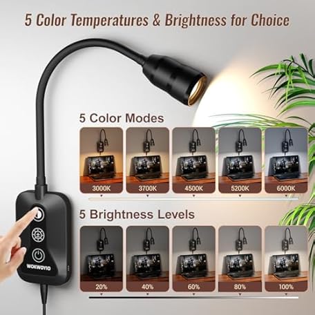 Wall Mounted Reading Light with Hand Sweep Sensor Switch, Book Light for Reading with USB Output, 5 Color & Brightness Dimmable Wall Lights for Bedroom, Wall Lamp with Flexible Neck-Black 1 Pack