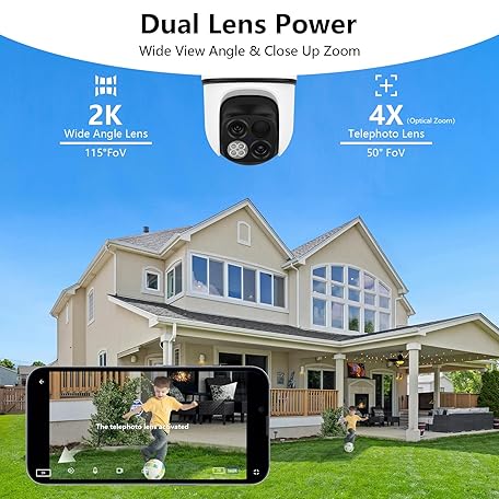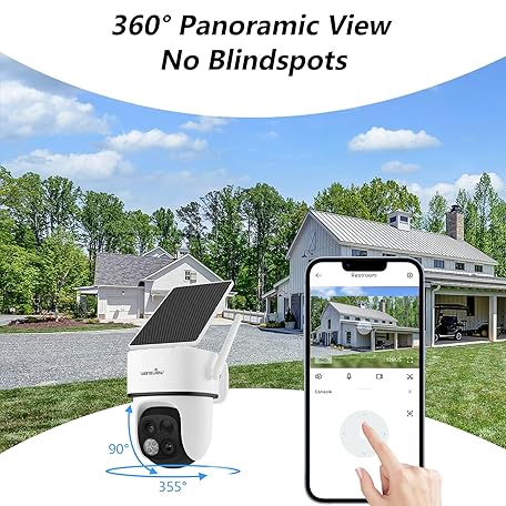 wansview Security Cameras Wireless Outdoor-2K Dual Lens Home Security Cameras, 360° View, Solar Panel Battery Powered, Color Night Vision, PIR Sensor, IP65 Waterproof, Work with Alexa, B7 2P White