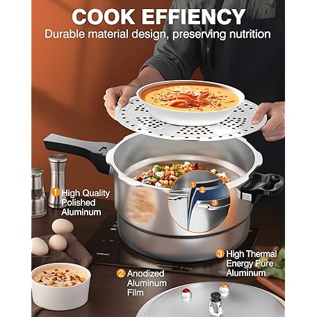 • WantJoin 4QT Aluminum Pressure Cooker w/Release Valve & Multiple Protective Devices,Pressure Canner Compatible with Gas & Induction Cooker,Canner Rack Included