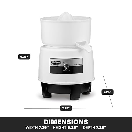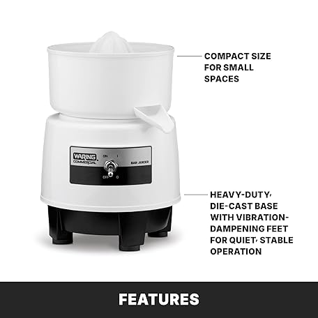Thông tin sản phẩm Waring Commercial BJ120C Compact Citrus Juicer, 120V, 5-15 Phase Plug,White, 34 Ounce