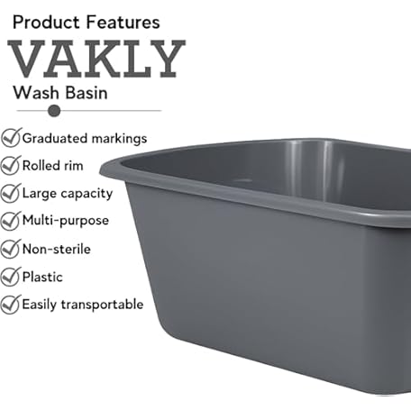 Thương hiệu Vakly là cái tên nổi tiếng được rất nhiều khách hàng trên thế giới chọn lựa. Với kiểu dáng đẹp mắt, sang trọng, sản phẩm Wash Basins – Rectangular Plastic Hospital Bedside Soaking Tub - Small 7 Qt Graduated Bucket - Portable Washbasin for Washing, Cleaning, Foot Bath, Dishes, Face Cleansing Bowl -13.25 x 10 x 4.5 Inches là sự lựa chọn hoàn hảo nếu bạn đang tìm mua một món cho riêng mình.