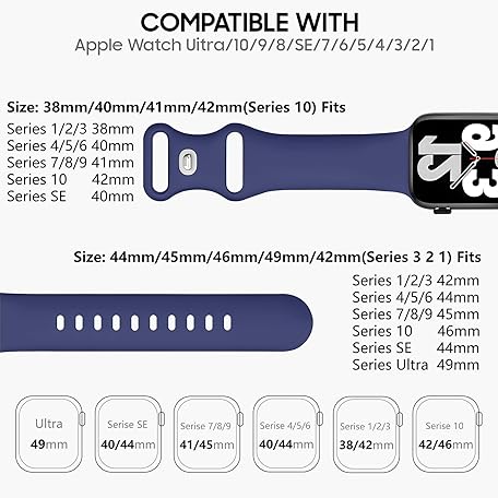 Sản phẩm Watch Bands Compatible with Apple Watch Band 40mm 41mm 38mm 45mm 44mm 42mm 46mm 49mm for Women Men, Patenting Sport Soft Silicone Band for iWatch Series 10/9/8/7/6/5/4/3/2/1 Ultra SE and More đang được bán với giá ưu đãi là $4.3491 tại nước Mỹ.