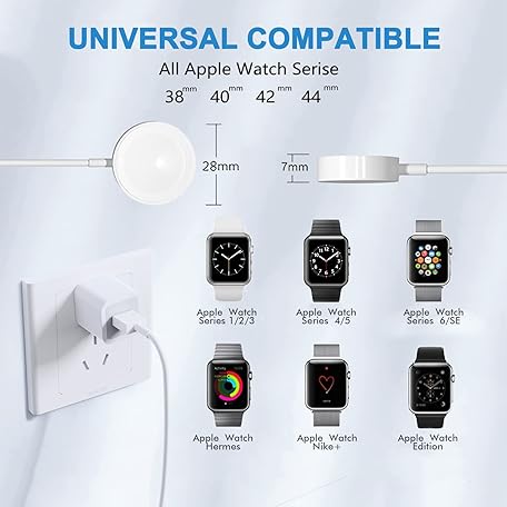 Thông tin sản phẩm Watch Charger for Apple Watch Charger, Long 6.6FT iWatch Portable Wireless Fast Charging Cable Cord with USB Wall Charge Plug Adapter Block Compatible with Apple Watch Series 9/8/7/SE/6/5/4/3/2/1