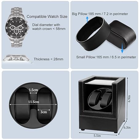 Thông tin sản phẩm Watch Winder for Automatic Watches,Automatic Watch Winder Box,Double Watch Winder with Quiet Japanese Motor,USB Type C
