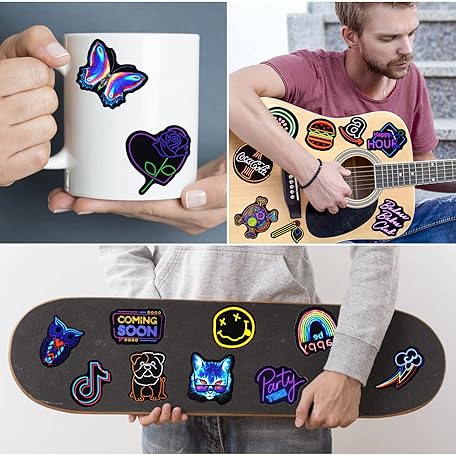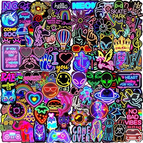 Thông tin sản phẩm Water Bottle Stickers 200 Pcs Cool Neon Sticker Packs, Prizes for Kids Classroom Reward, Waterproof Vinyl Stickers for Water Bottles Laptop Skateboard Scrapbooking Journaling Notesbook Luggage etc