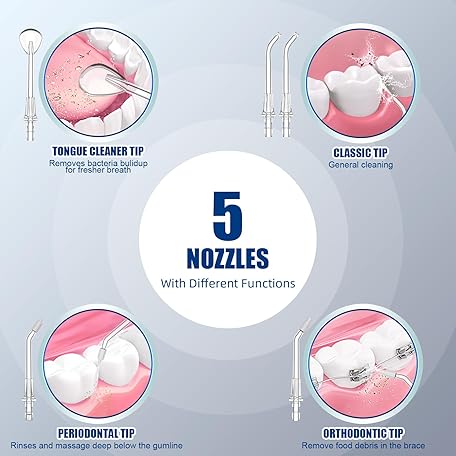 Thông tin sản phẩm Water Dental Flosser Teeth, 10 Adjustable Pressure, 600ml Large Capacity, Electric Oral Irrigator Water Floss for Teeth Cleaning, 5 Water Jet Tips for Family (Black)