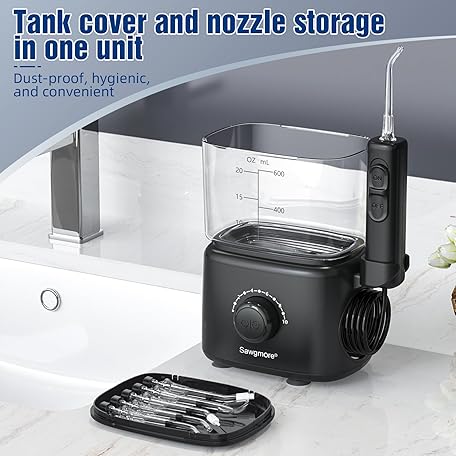 Thương hiệu Sawgmore là cái tên nổi tiếng được rất nhiều khách hàng trên thế giới chọn lựa. Với kiểu dáng đẹp mắt, sang trọng, sản phẩm Water Dental Flosser Teeth, 10 Adjustable Pressure, 600ml Large Capacity, Electric Oral Irrigator Water Floss for Teeth Cleaning, 5 Water Jet Tips for Family (Black) là sự lựa chọn hoàn hảo nếu bạn đang tìm mua một món cho riêng mình.