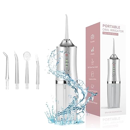 Water Dental Flosser Teeth Irrigator with 3 Modes Cordless Water Teeth Cleaner with 4 Replace Sprinkler Head IPX7 Waterproof Rechargeable Portable for Travel Home Braces Bridges Care