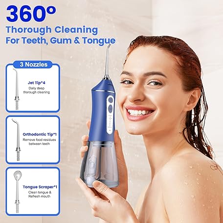 Sản phẩm Water Flosser for Teeth Cleaning and Flossing, 5 Modes Rechargeable Cordless Oral Irrigator 320ml Water Tank Teeth Cleaner, IPX7 Waterproof Portable Electric Dentel Flossers for Home and Travel,Blue đang được bán với giá ưu đãi là $21.7891 tại nước Mỹ.