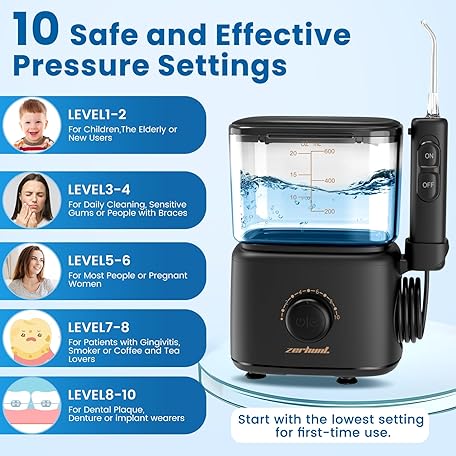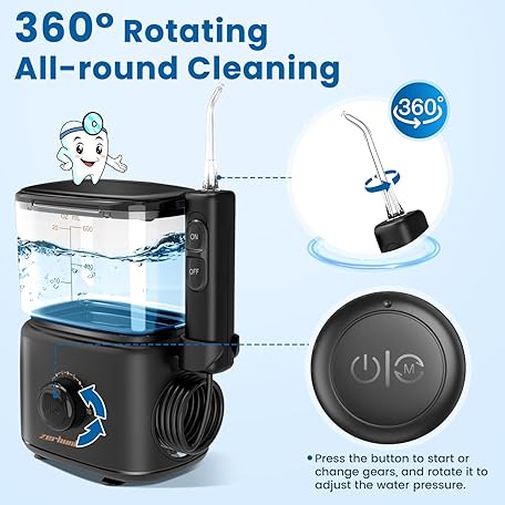 Sản phẩm Water Flosser Oral Irrigator for Teeth: Electric Countertop for Dental Health and Cleaning 600ML Professional Water Teeth Cleaner with 10 Modes and 5 Nozzles for Family đang được bán với giá ưu đãi là $23.9255 tại nước Mỹ.
