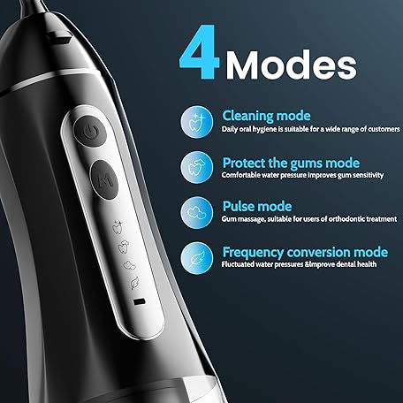 Thông tin sản phẩm Water Flossers for Teeth, Electric Floss for Adults, Water Dental Picks for Teeth Cleaning and Flossing, Portable Flossers for Travel Size, Travel Bag and 4 Tips, IPX7 Waterproof - Black