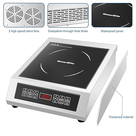 Thông tin sản phẩm WaterElfo Professional Portable Induction Cooktop,1800 Watts 120V Commercial Range Countertop Burner, 1800 Watts Induction Burner with Sensor Touch and LCD Screen Low noise, timed