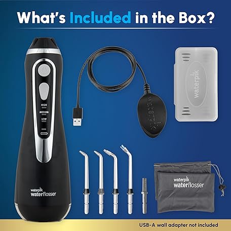 Thông tin sản phẩm Waterpik Cordless Advanced 2.0 Water Flosser For Teeth, Gums, Braces, Dental Care With Travel Bag and 4 Tips, ADA Accepted, Rechargeable, Portable, and Waterproof, Black WP-582, Packaging May Vary