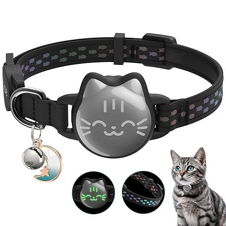 Thông tin sản phẩm Waterproof Airtag Cat Collar, Breakaway Cat Airtag Collar with Luminous & Reflective Fish Pattern, Lightweight Kitten Collars for Apple Air tag, Hidden GPS Tracker Holder for Cats, Kittens(9-13")