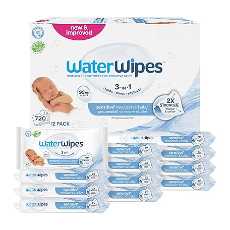 Thông tin sản phẩm WaterWipes Sensitive+ Newborn & Baby Wipes, 3-In-1 Cleans, Cares, Protects, 99.9% Water, Unscented & Hypoallergenic, 720 Count (12 Packs)
