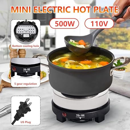 Thông tin sản phẩm Watris Veiyi Small Electric Hot Plate, 500W Mini Hot Plate Electric Stove, Portable Electric Burner for Office Home Kitchen (US Plug 110V)