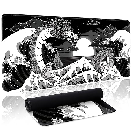 Wave Sea Dragon Gaming Mouse Pad Large Desk Mat Extended Black Keyboard Mouse Pad Gaming Mousepad with Non-Slip Base Stitched Edge Anime Mouse Mat Desk Pad 31.5 X 11.8 Mouse Pads for Desk Home Office