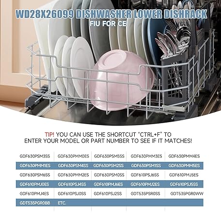 WD28X26099 WD28X34744 Dishwasher Lower Rack Compatible with GE Dishwashers - Replaces WD28X24396,WD28X22659,WD28X28918. Fits Models GDF510PSR3SS, GDF510PSD1SS, GDF535PSR0SS, GDF510PSR6SS, GDF510PSM0SS