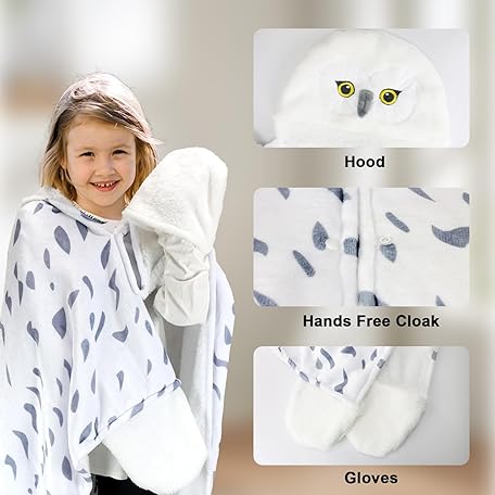 Thông tin sản phẩm Wearable Blanket Hoodie, Snowy Owl Hooded Blanket Cloak with Gloves, Super Soft Owl Gifts for Adults Kids Birthday Holiday