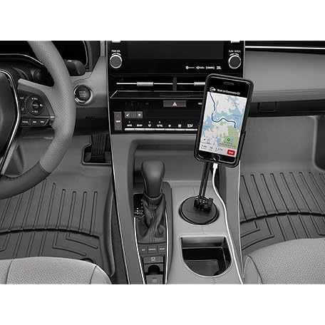 WeatherTech CupFone with Extension – Adjustable, Universal Cup Holder Cell Phone Mount Car & Truck Accessory – Best Design for iPhone & Smartphone Charging – Black Metal Knobs