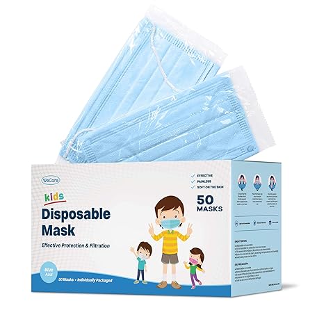 Sản phẩm WECARE Disposable Face Masks For Kids, 50 Blue Face Masks, Individually Wrapped đang được bán với giá ưu đãi là 0 tại nước Mỹ.