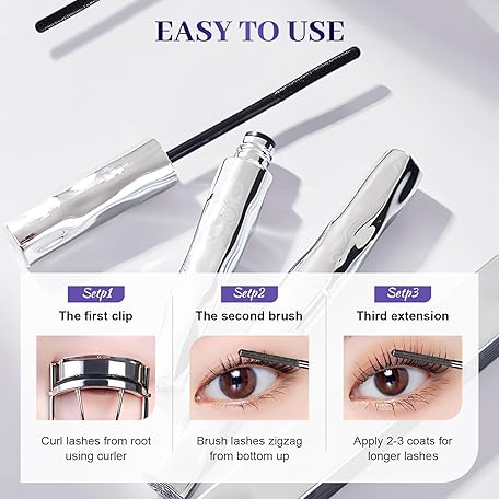 Wegodal Waterproof Quick Drying Curling Mascara, Upgrade 3D Curling Metal Wands Mascaras Black, Iron Wand Mascaras Metal Mascara Wand No Flaking, No Clumping (A-1Pcs)