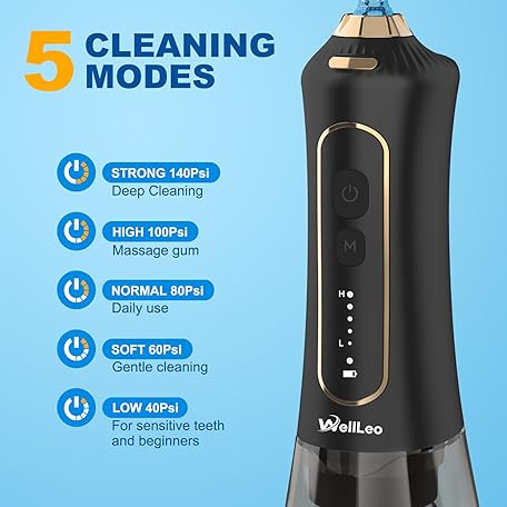 Thông tin sản phẩm WellLeo Water Flosser for Teeth, 300ML Cordless Oral Irrigator Rechargeable Dental Flosser Picks with 5 Modes 5 Jet Tips,IPX7 Waterproof Teeth Cleaner for Braces Gum Care, Home Travel Use